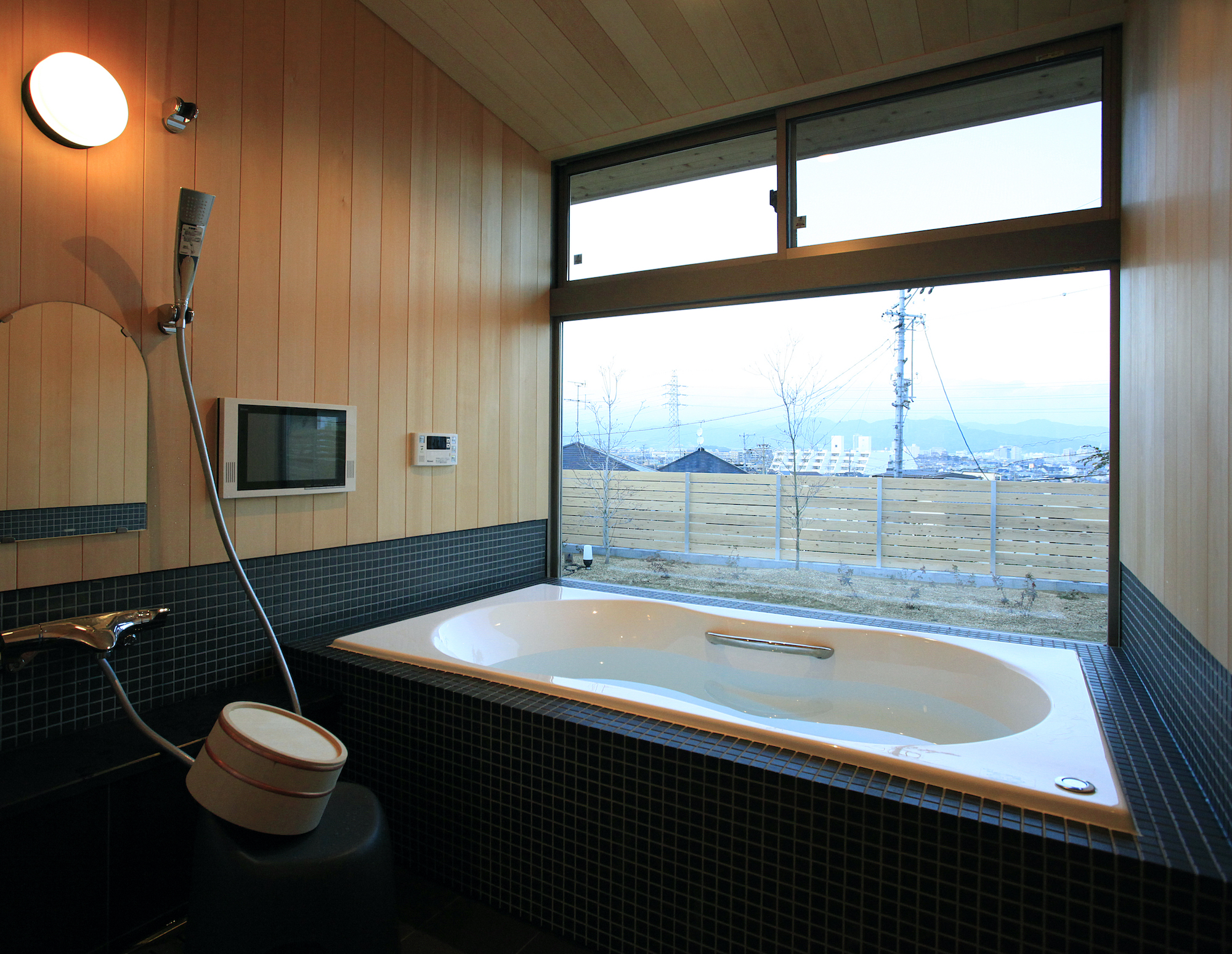 この住まいでは、計画地から見える富士山と駿河湾の美しい景色を、それぞれの部屋から異なる角度で楽しめるように設計しました。週末住宅としての利用を考慮し、別荘のような要素も取り入れています。リビング・ダイニング・キッチン(LDK)の両側には全開可能な木製サッシを設置し、室内にいながらも屋外にいるような開放感を味わっていただける工夫を施しています。また、浴室からも富士山や駿河湾の景色を楽しめるよう配慮し、家主様だけでなく、ご来客の方にも優雅な時間を過ごしていただける空間にしました。
